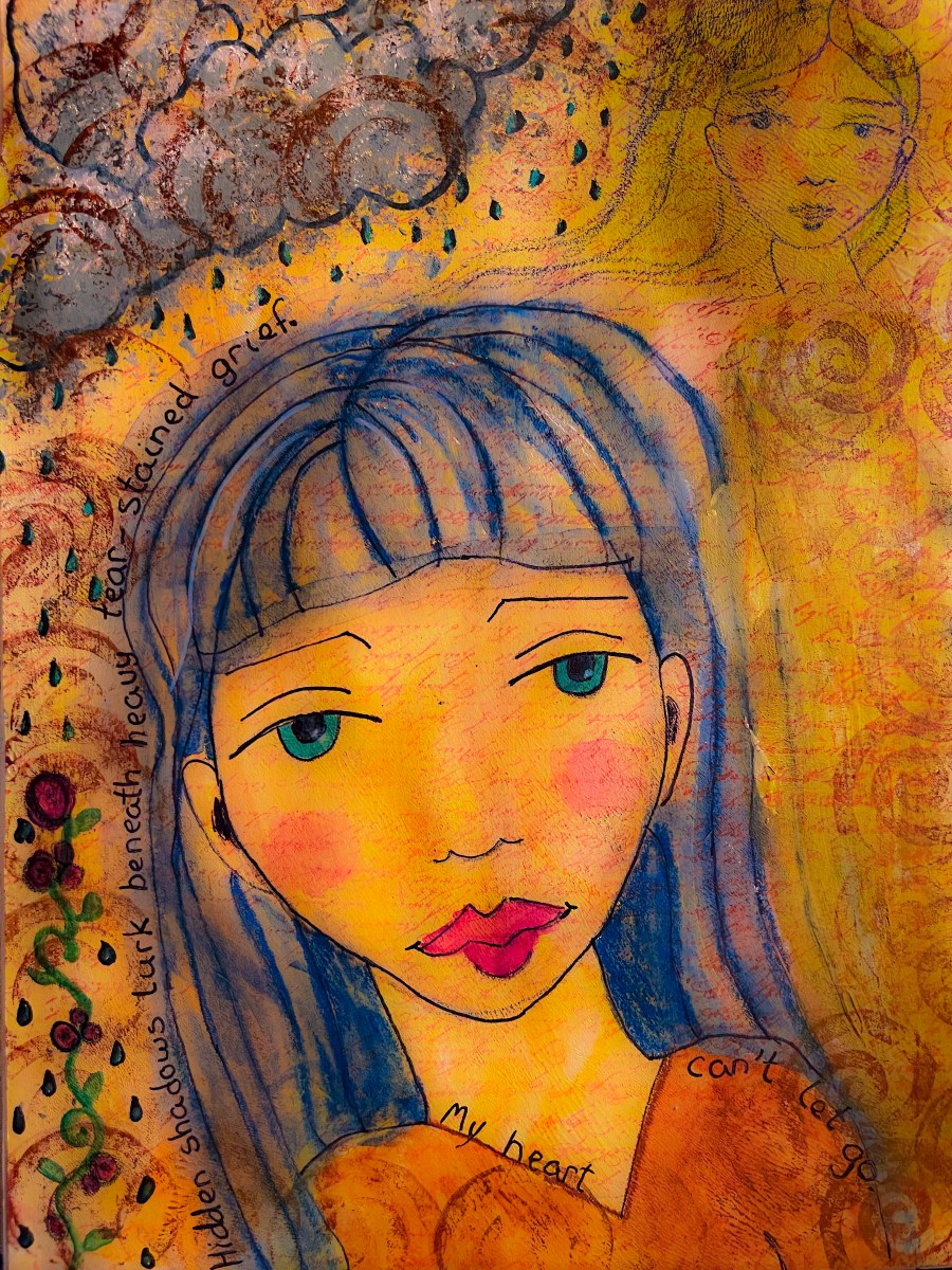 beneath heavy tear-stained grief.